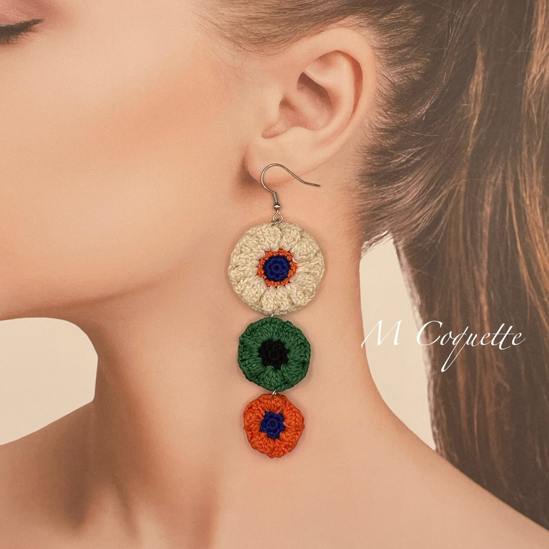 【受注製作】ボタニカルフラワークロッシェ(三連)|M Coquette-編み物の個性的な大ぶりハンドメイドピアス