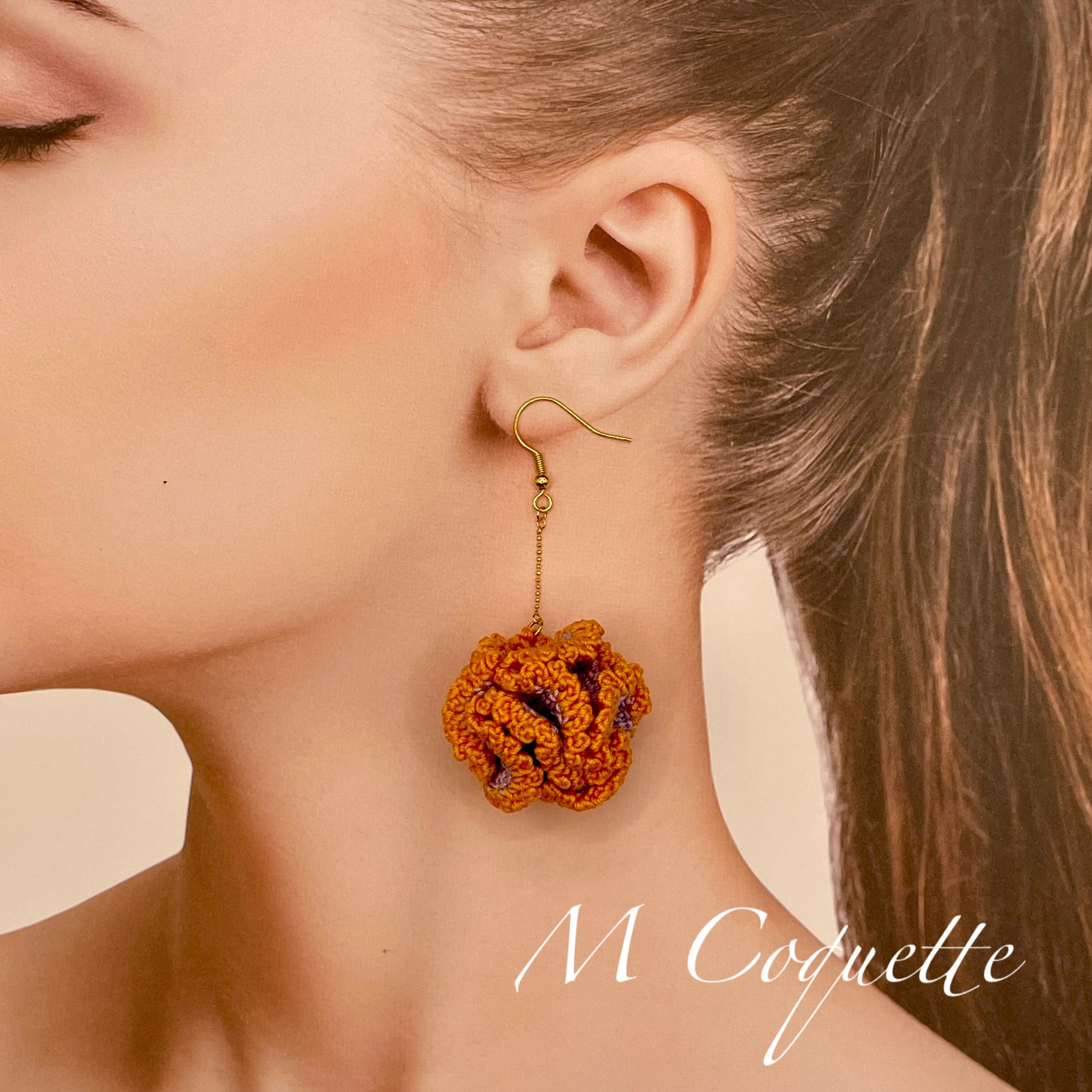 【受注製作】カーネーションボールクロッシェ|M Coquette-編み物の個性的な大ぶりハンドメイドピアス