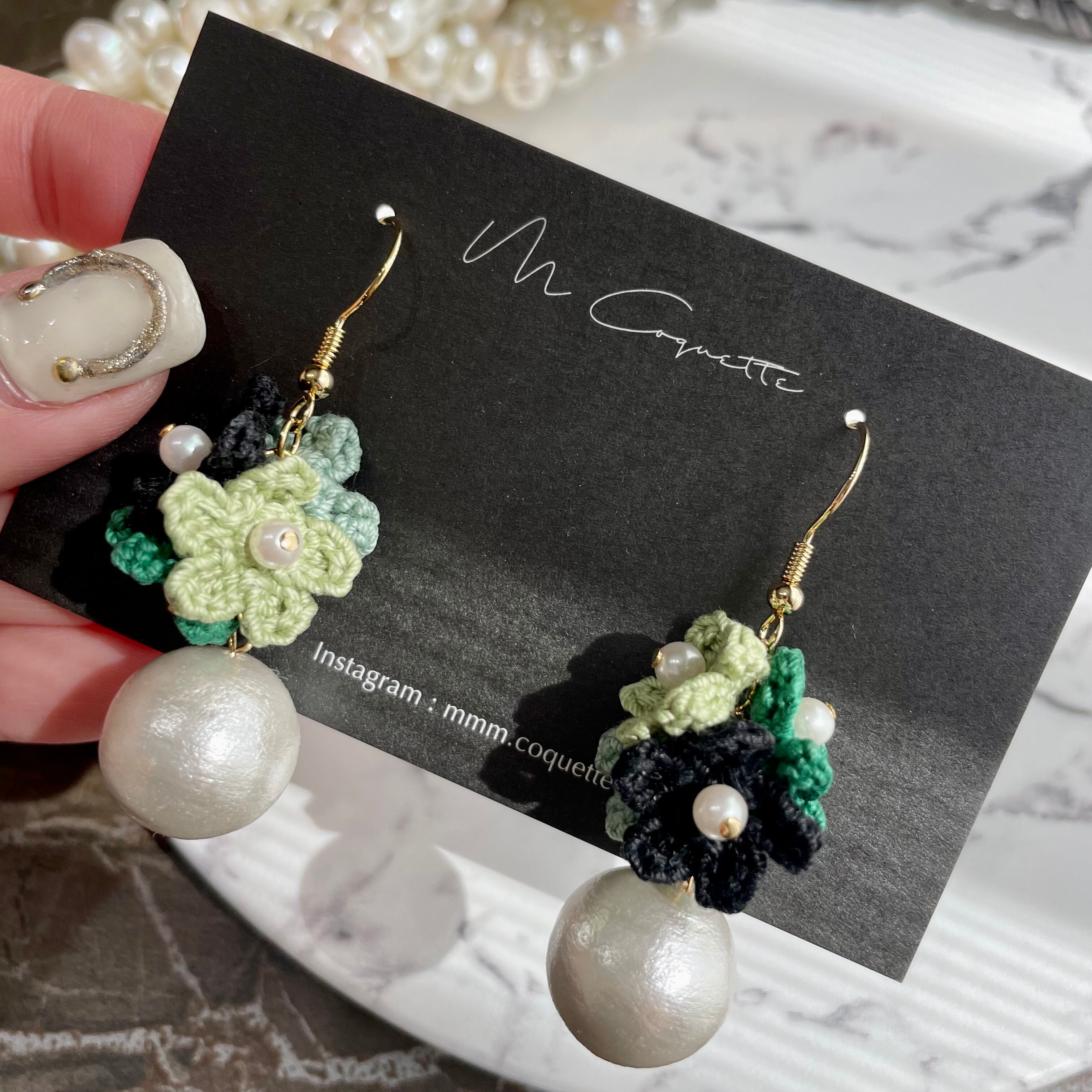 フラワーブーケクロッシェ|M Coquette-編み物の個性的な大ぶりハンドメイドピアス