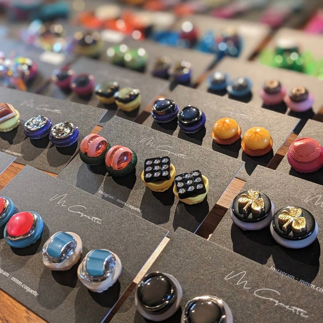 ヴィンテージボタンピアス2点セット|M Coquette-編み物の個性的な大ぶりハンドメイドピアス