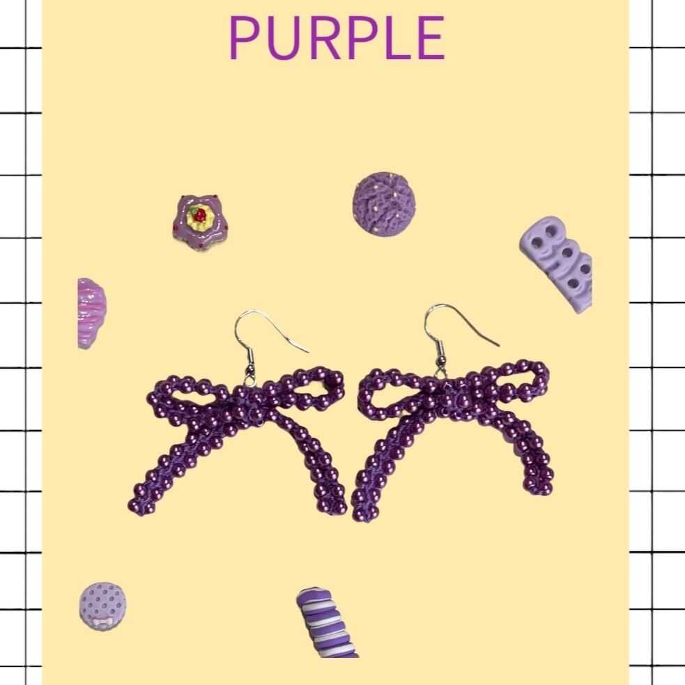 推しカラーリボンピアス|M Coquette-編み物の個性的な大ぶりハンドメイドピアス